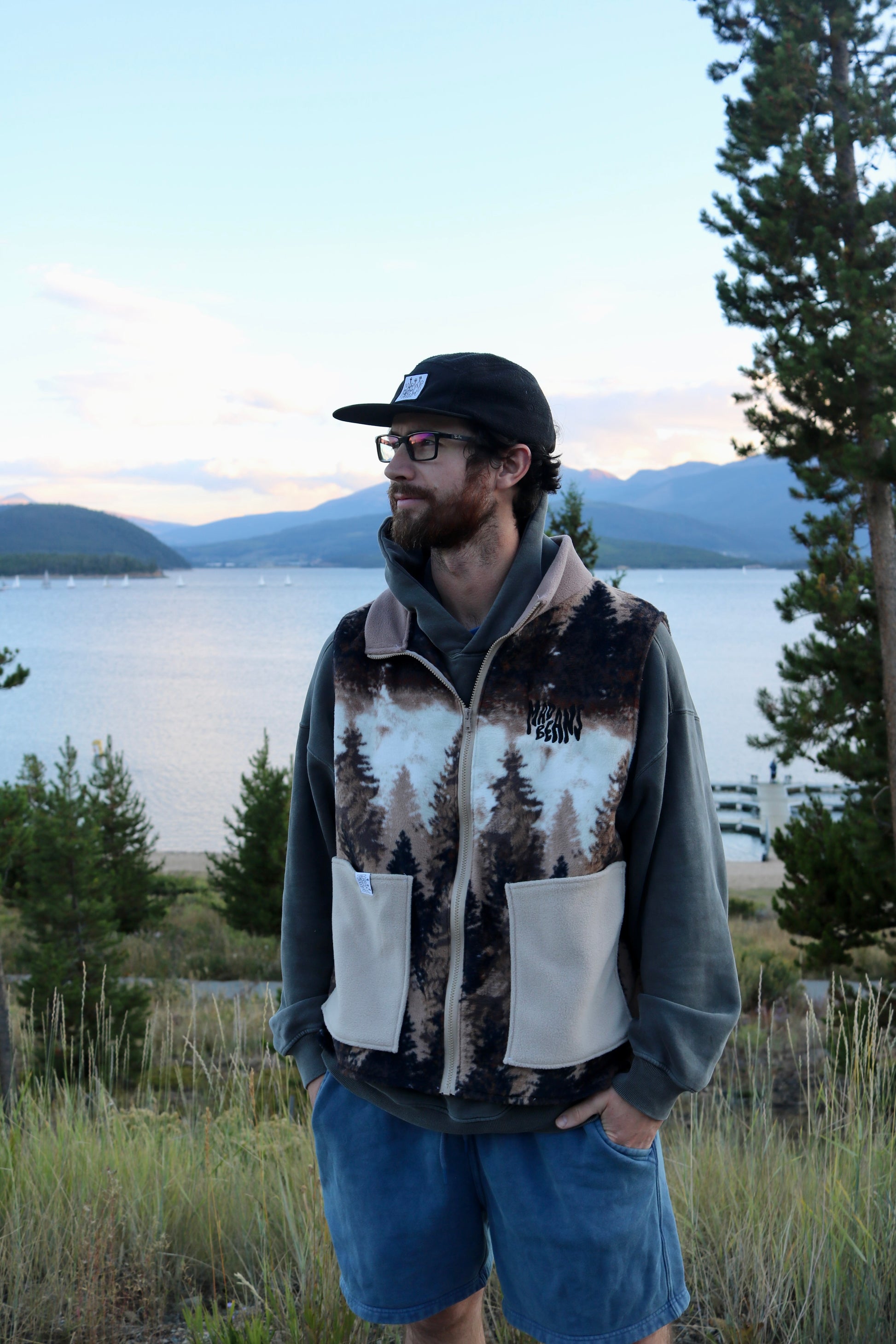 MadBeans oversized fleece vest with embroidered logo.