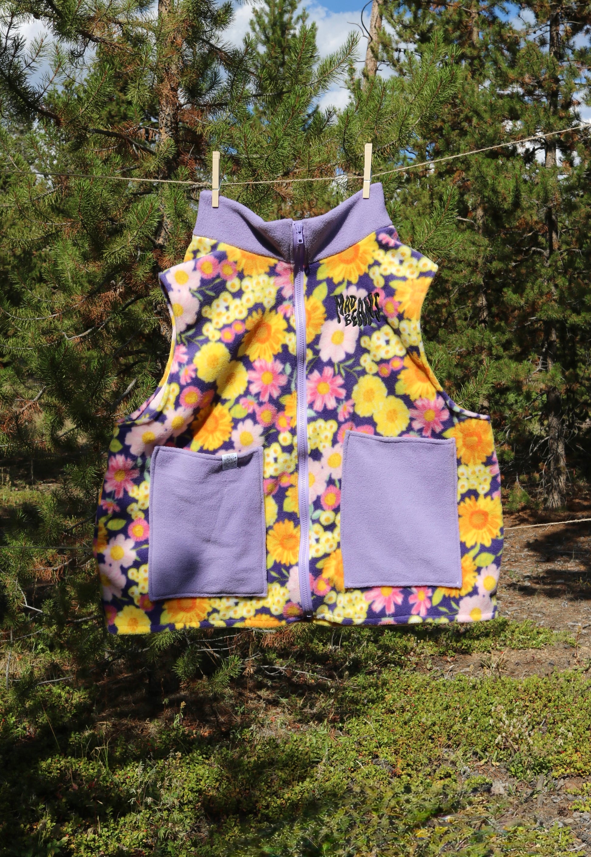 MadBeans oversized fleece vest with embroidered logo.