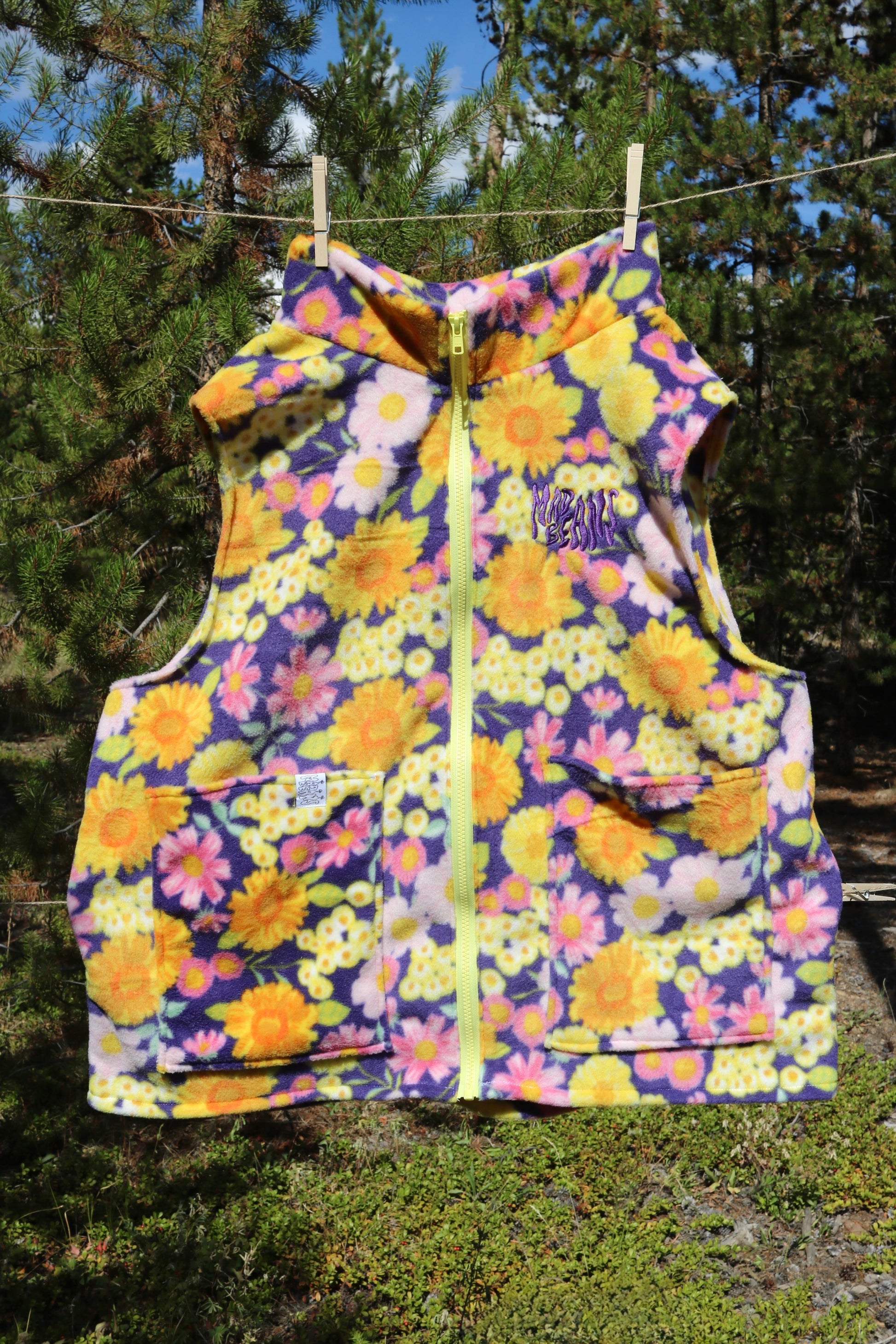 MadBeans oversized fleece vest with embroidered logo.
